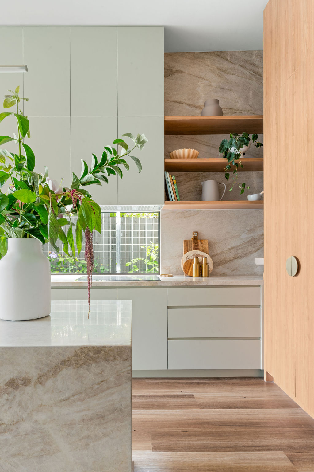 The soothing rich brown hues, interwoven with feathery white lines, creates an intricate yet calming environment that will become the heart of your space.